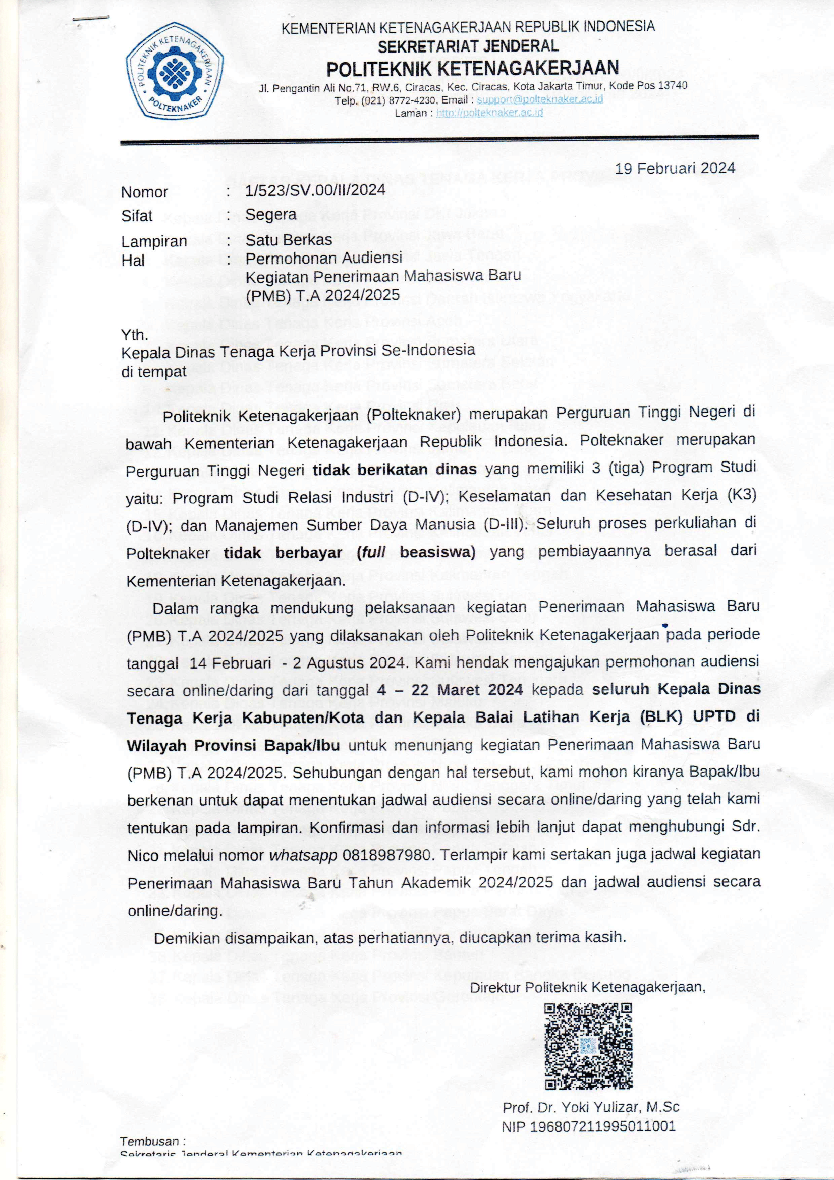 PENERIMAAN MURID BARU POLITEKNIK KETENAGAKERJAAN TAHUN 2024/2025
