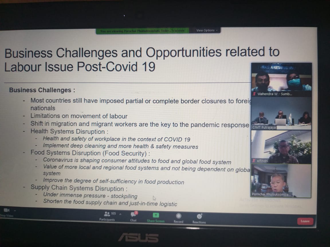 Follow Up IMT-GT Video Conference Managing the Impact of Covid-19 on IMT-GT Human Resources Development, Education and Agriculture Cooperation Wednesday 8 July 2020. West Sumatera Delegation : 1. Bappeda West Sumatra 2. Academition ; Prof. DR. Elfindri 3. Disnakertrans West Sumatra; Head of The Department of Labor and Transmigration West Sumatra Province Nazrizal, S. Sos, M. Si , Head Of Traning and Labor Placement Division Wilson, S.Sos, M.Pd, Secretary Yulitri Susanti, S.Pi, Head Of The Labor Market Information Section Wahendra, W.ST.MM,and Head of Job Training Section Rina Adyanti, S.IP.M.Si .