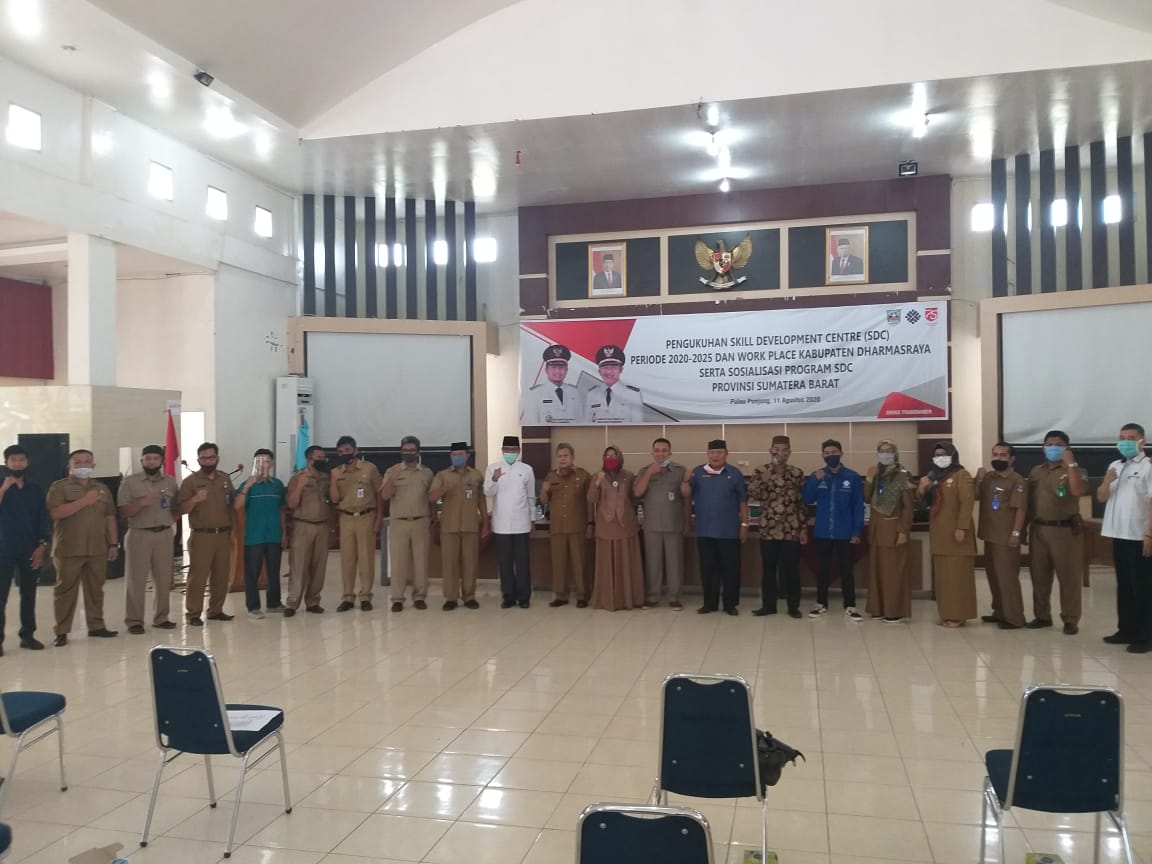 Pengukuhan Skill Development Centre ( SDC ) Kab. Dharmasraya, selasa 11 Agustus 2020, bertempat di Auditorium Kantor Bupati Kabupaten Dharmasraya yang dilanjutkan dengan Sosialisasi Program SDC. Dengan terbentuknya forum SDC Dharmasraya upaya pengentasan pengangguran di Kab. Dharmasraya semakin terpadu dan terintegrasi diantara berbagai stake holder di Kab. Dharmasraya.