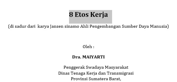 Jansen sinamo, ahli pengembangan sumberdaya manusia secara sistematis telah memetakan motivasi kerja dalam konsep 8 Etos Kerja yaitu :