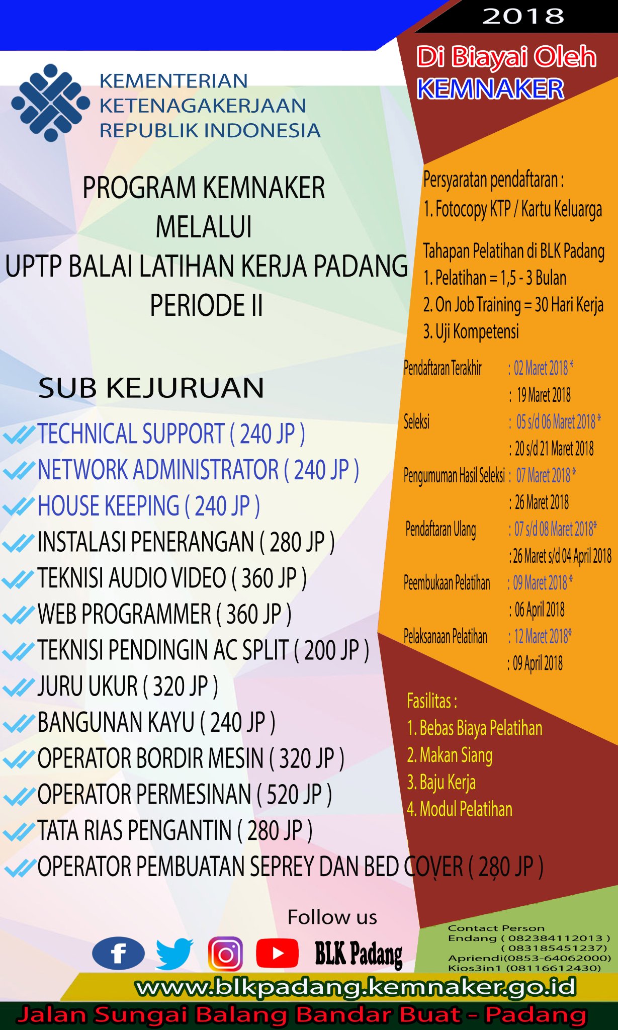 PROGRAM BALAI LATIHAN KERJA PADANG KEMNAKER