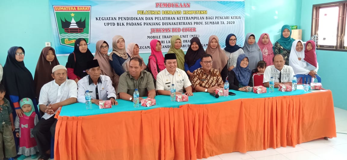 Pembukaan Pelatihan Berbasis Kompetensi Jurusan Bed Cover MTU dana Pokir bapak Rafdinal (PKS) di Nagari Lasi, Kecamatan Candung, Kabupaten Agam tanggal 06 Maret 2020 pukul 10.00 WIB.
