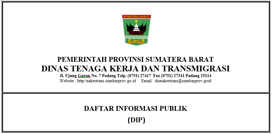 Daftar Informasi Publik yang dihasilkan oleh Dinas Tenaga Kerja dan Transmigrasi Provinsi Sumatera Barat adalah