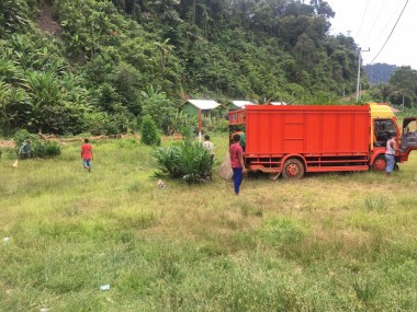 Padang tarok SP 1 Kabupaten Sijunjung, pendistribusian sarana produksi pertanian T3 (9550 batang bibit sawit siap tanam dan 9550 bibit coklat, serya sarana pertanian lainnya spt pupuk NPK, fungisida dan insektisida cair) untuk 191 KK warga transmi.