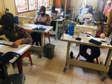 Kegiatan Pembuatan Masker di BLK Payakumbuh, Peserta dari Polwan Polres Kota Payakumbuh.