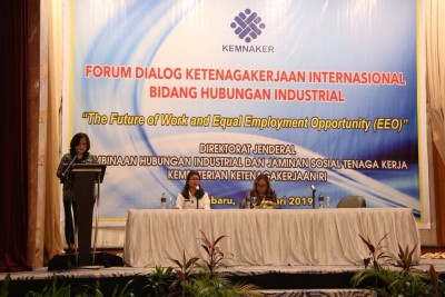 Dalam rangka memperingati 100 tahun International Labour Organization (ILO) dan perkembangan ekonomi era digital, Kementerian Ketenagakerjaan menggelar Forum Dialog Ketenagakerjaan Internasional Bidang Hubungan Industrial di Pekanbaru, Riau,.