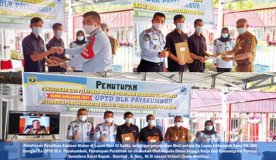 Penutupan Pelatihan Kabinet Maker di Lapas Klas III Suliki, sekaligus penyerahan MoU antara Ka Lapas Irdiansyah Rana SH. MH Dengan Ka UPTD BLK Payakumbuh, Penutupan Pelatihan ini dilakukan Oleh Kepala Dinas Tenaga Kerja dan Transmigrasi Prov.