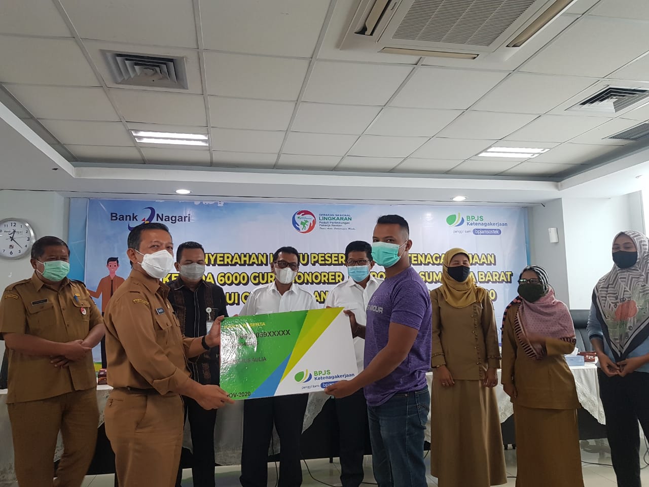 Penyerahan Kartu BPJS Ketenagakerjaan kepada 6.000 Guru Honorer di Provinsi Sumatera Barat melalui GN Lingkaran CSR Bank Nagari Tahun 2020,