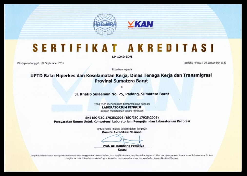 Selamat kepada UPTD Balai Hiperkes dan Keselamatan Kerja, Dinas Tenaga Kerja dan Transmigrasi Prov. Sumbar Jl. Khatib Sulaiman No. I 25 Padang.