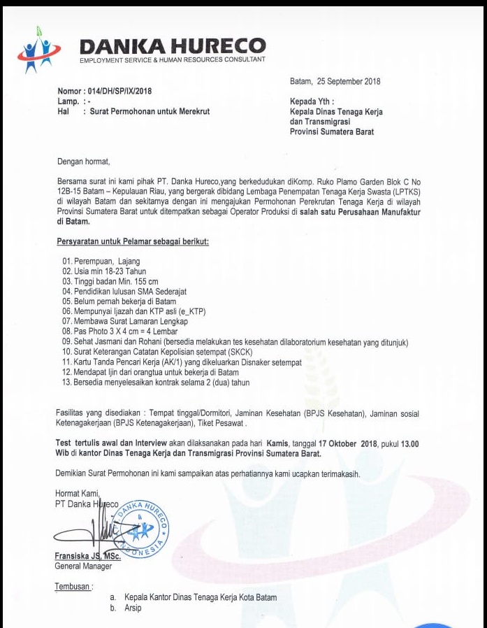 Lowongan Kerja.. Segera daftarkan dirimu ke Dinas Tenaga Kerja dan Transmigrasi Jl. Ujung Gurun No. 7 Padang.