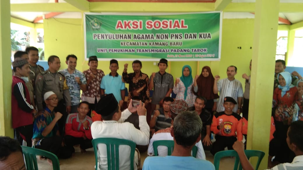 Acara Kegiatan Aksi Sosial dari KUA Kecamatan Kamang Baru Kemenag Kab. Sijunjung di lokasi Padang Tarok SP.1 bertempat di Balai Desa, membagikan 150 paket sembako ( isinya beras 10 kg, gula, teh, mie instan 4 buah, sarung, pakaian dan buku2 agama ) kepada Transmigran Padang Tarok SP.1, dihadiri Anggota DPRD Sijunjung (Sabirin), Babinsa Tanjuang Kaliang dan Padang Tarok , Kapolsek Kec. Kamang Baru, Pegawai Camat Kamang Baru beserta rombongan, Dinas Nakertrans Kab Sijunjung ( diwakili Kasi Pembinaan).